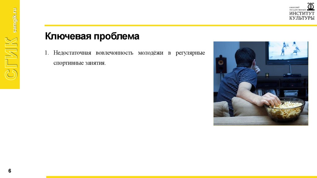• Острая проблема: пассивный образ жизни