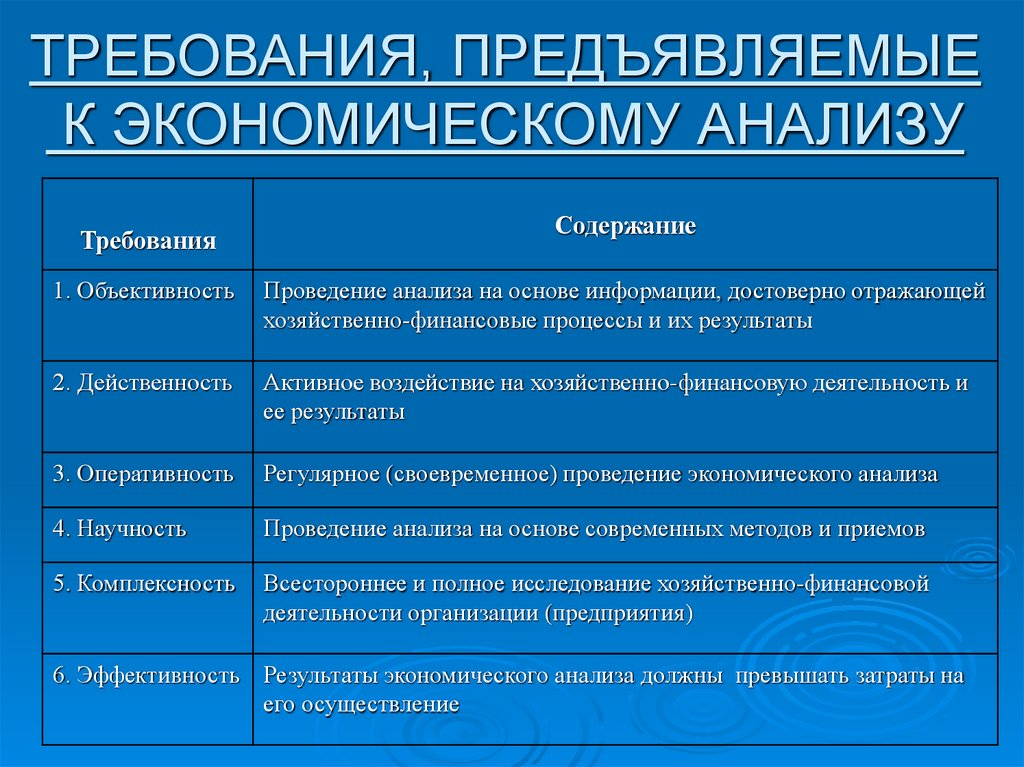ТРЕБОВАНИЯ, ПРЕДЪЯВЛЯЕМЫЕК ЭКОНОМИЧЕСКОМУ АНАЛИЗУ