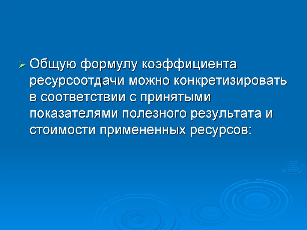 Общую формулу коэффициентаресурсоотдачи можно конкретизировать
