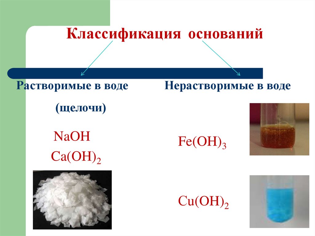 Классификация основанийРастворимые в воде