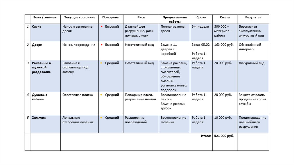 1. План технических работ по раздевалкам