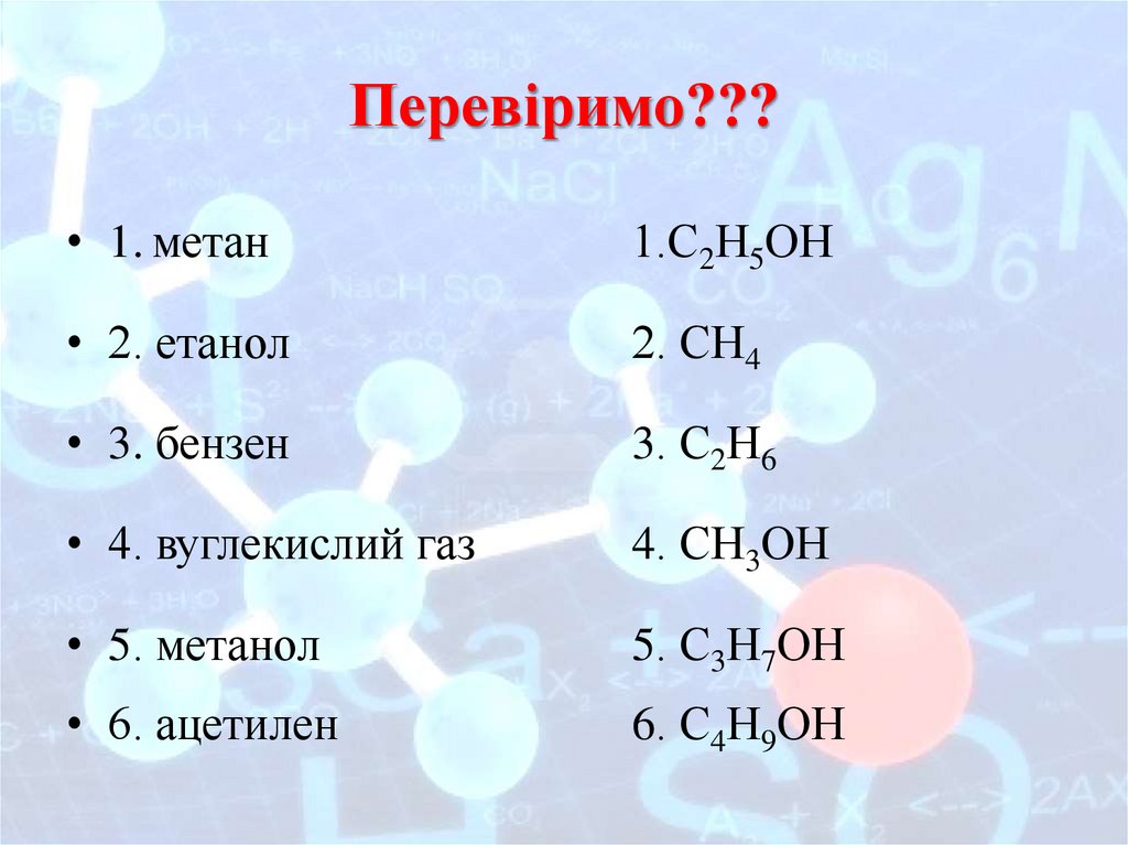 Перевіримо???• 1. метан