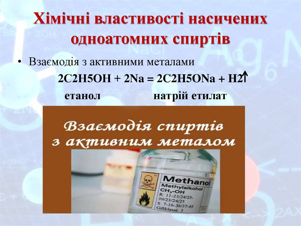Хімічні властивості насичениходноатомних спиртів