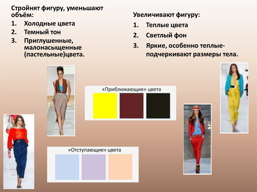 3. Яркие, особенно теплыеподчеркивают размеры тела.