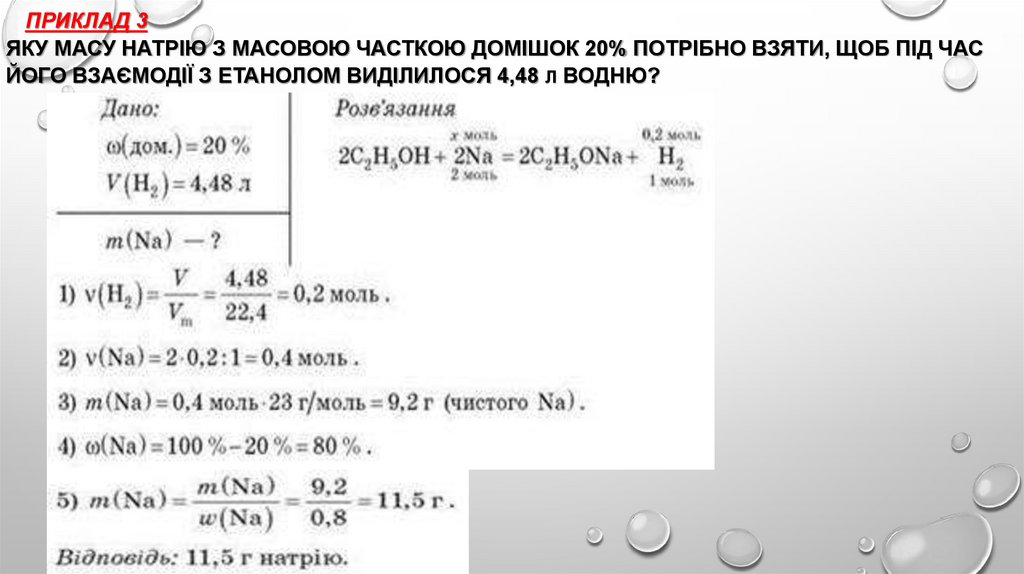 ПРИКЛАД 3ЯКУ МАСУ НАТРІЮ З МАСОВОЮ ЧАСТКОЮ ДОМІШОК 20% ПОТРІБНО ВЗЯТИ, ЩОБ ПІД ЧАС