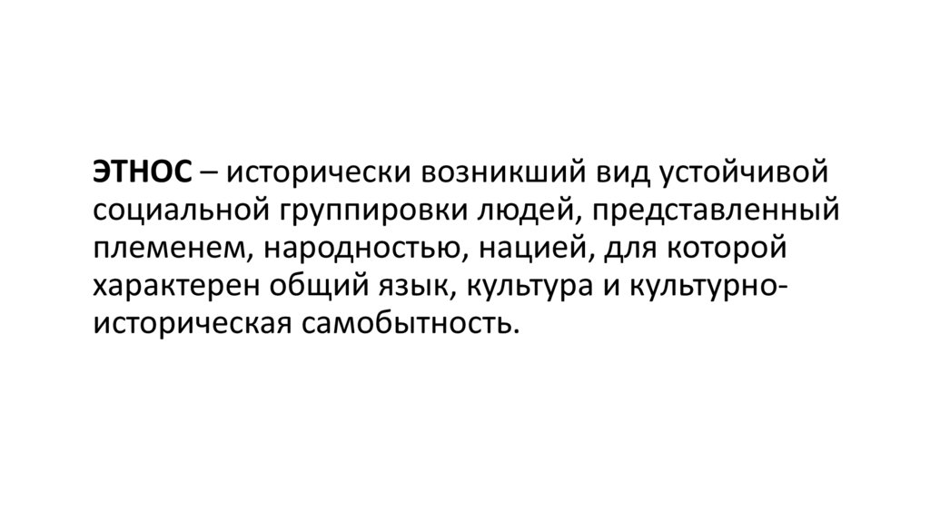 ЭТНОС – исторически возникший вид устойчивойсоциальной группировки людей, представленный