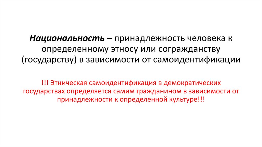 Национальность – принадлежность человека копределенному этносу или согражданству