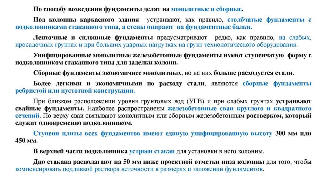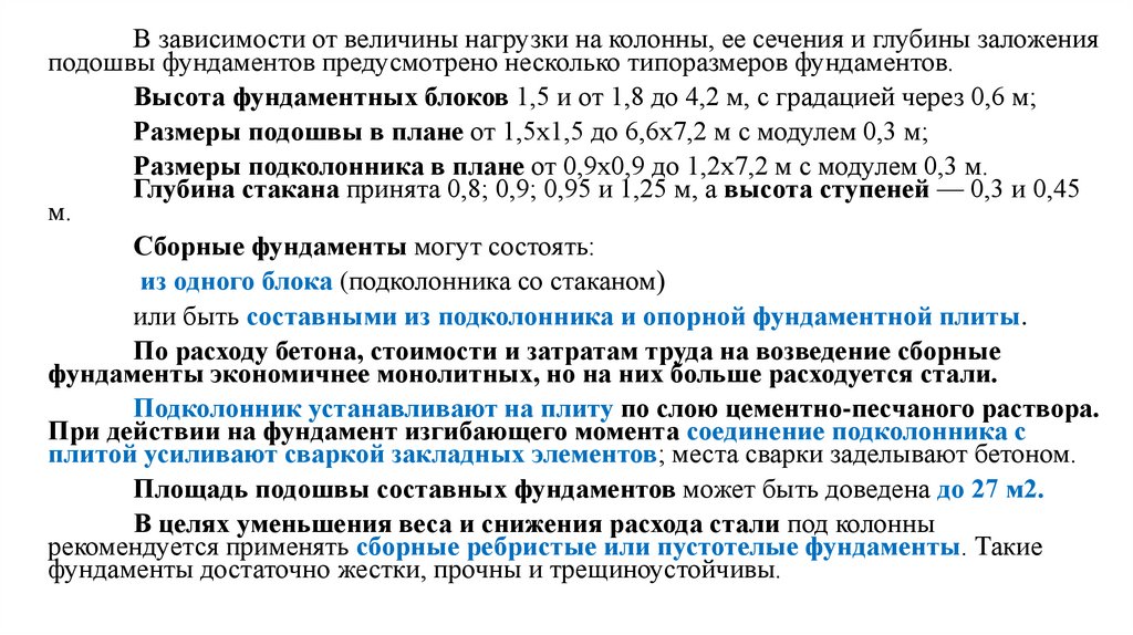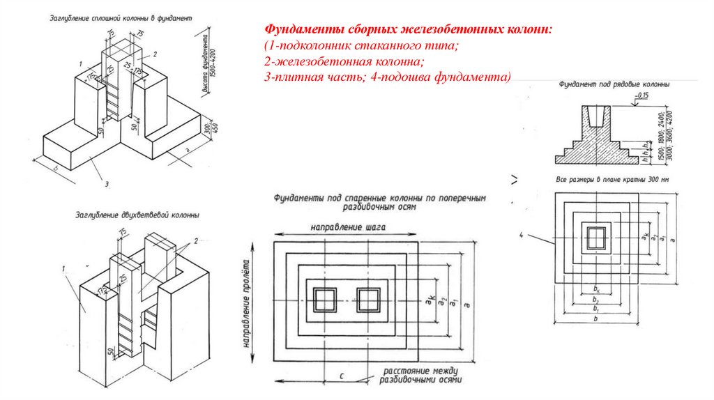 • Фундаменты состоят из подколонника и одно-, двух- или трехступенчатой плитной