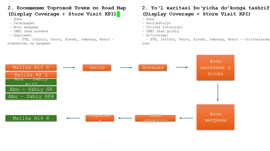 2. Посещение Торговой Точки по Road Map(Display Coverage + Store Visit KPI)