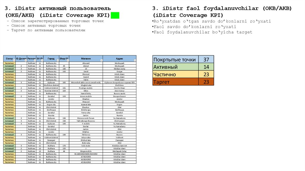 - Список активных торговых точек