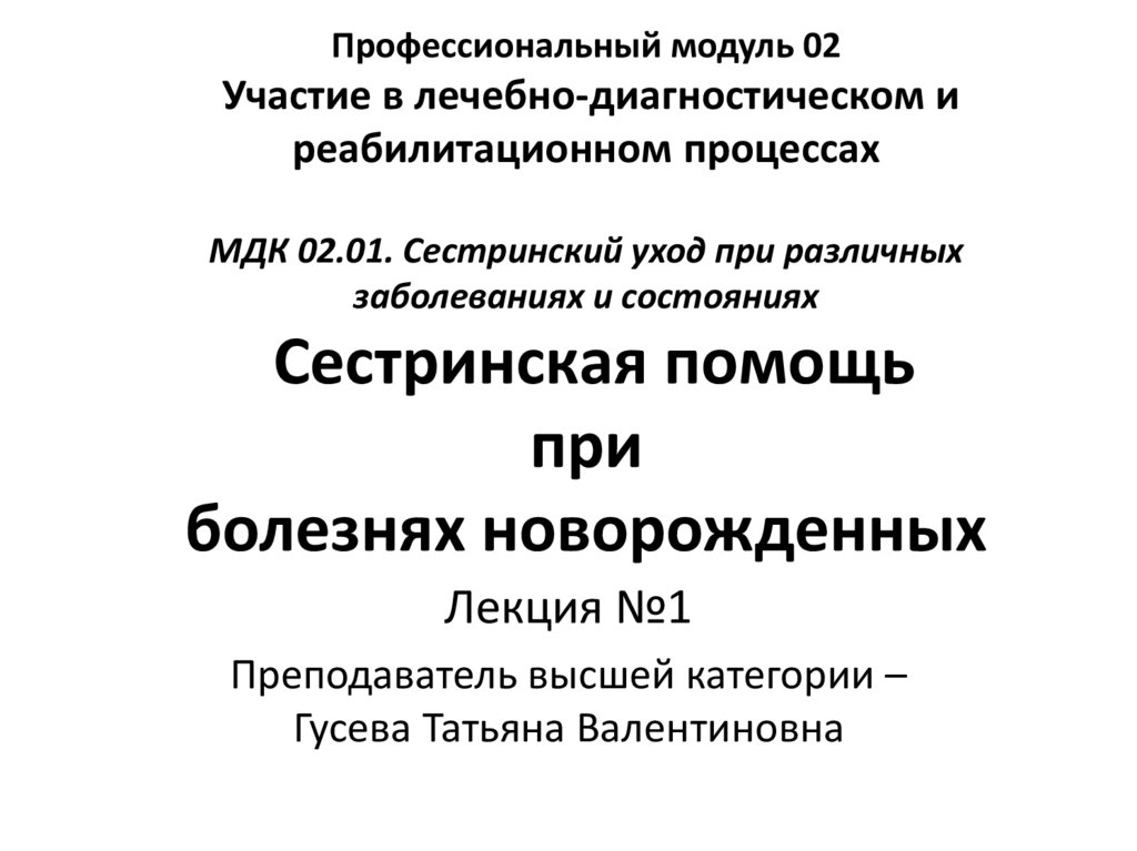 1. Профессиональный модуль 02 Участие в лечебно-диагностическом и реабилитационном процессах МДК 02.01. Сестринский уход при