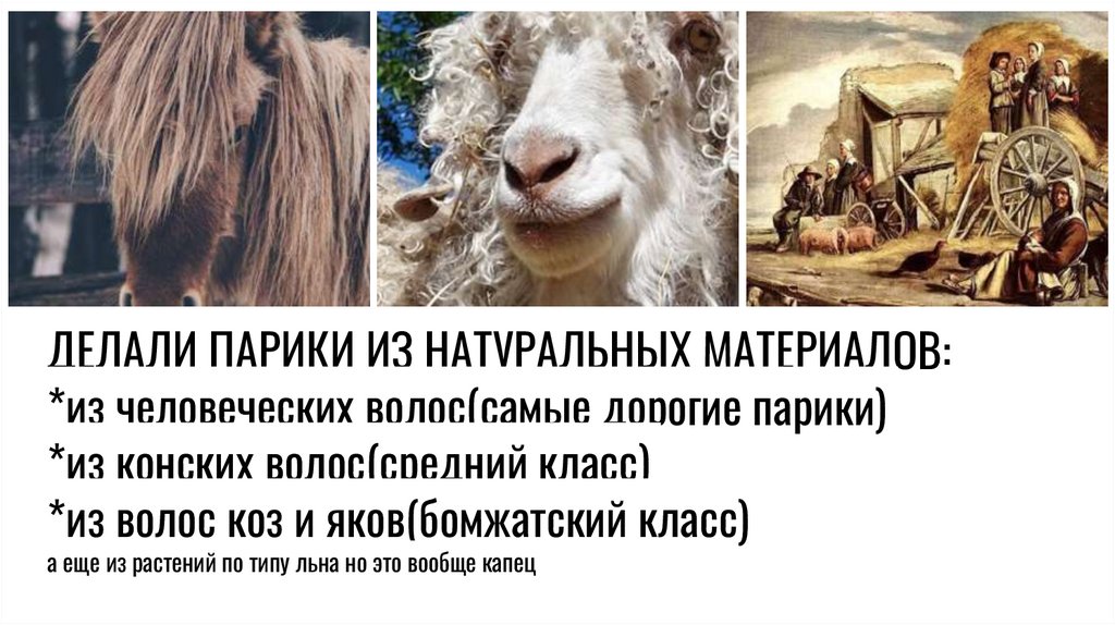 ДЕЛАЛИ ПАРИКИ ИЗ НАТУРАЛЬНЫХ МАТЕРИАЛОВ:*из человеческих волос(самые дорогие парики)