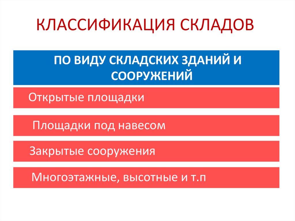 КЛАССИФИКАЦИЯ СКЛАДОВПО ВИДУ СКЛАДСКИХ ЗДАНИЙ И