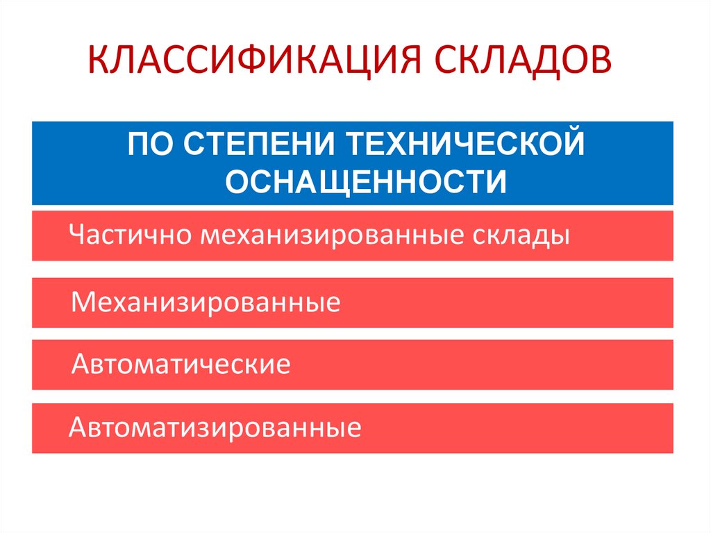 КЛАССИФИКАЦИЯ СКЛАДОВПО СТЕПЕНИ ТЕХНИЧЕСКОЙ