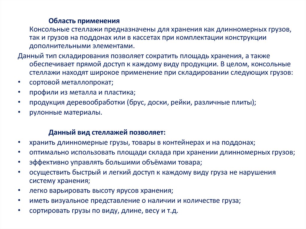 хранить длинномерные грузы, товары в контейнерах и на поддонах;