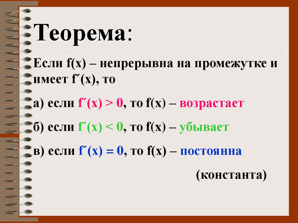 функция убывает; если f ΄(х) =0 – функция постоянна)