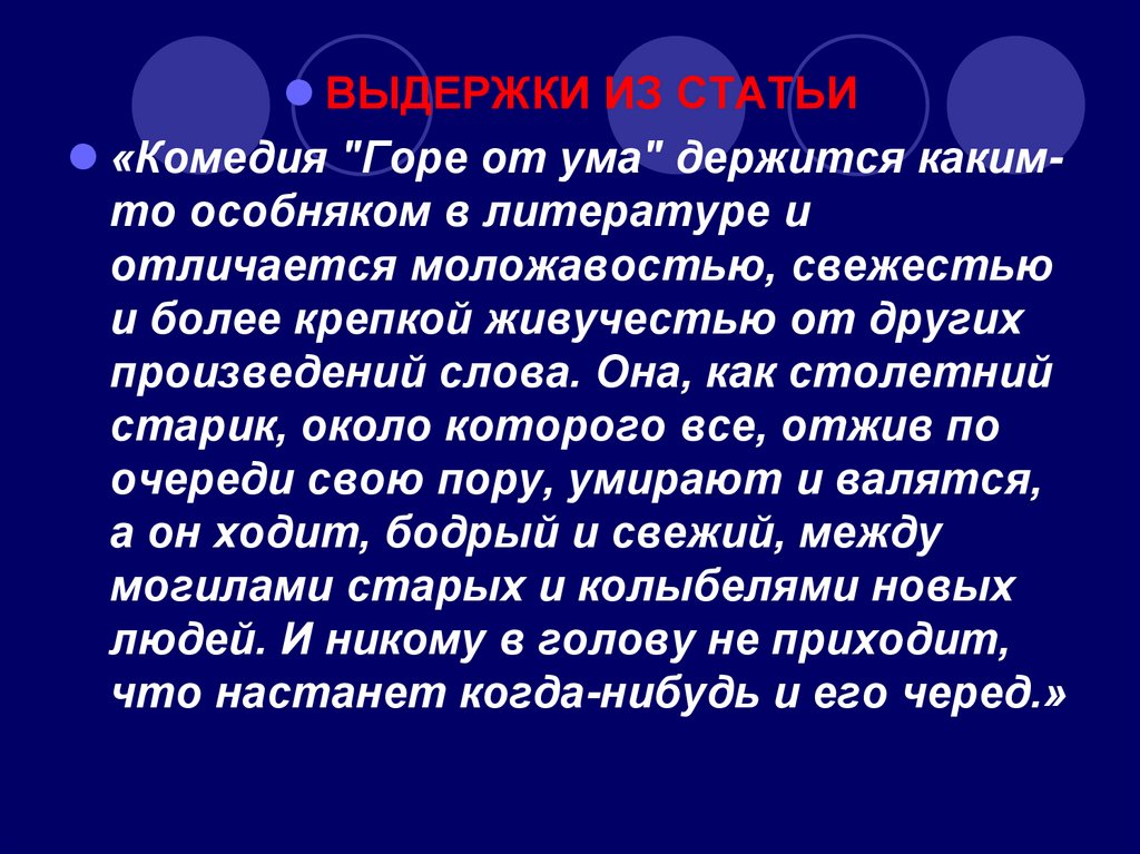 ВЫДЕРЖКИ ИЗ СТАТЬИ«Комедия "Горе от ума" держится какимто особняком в литературе и
