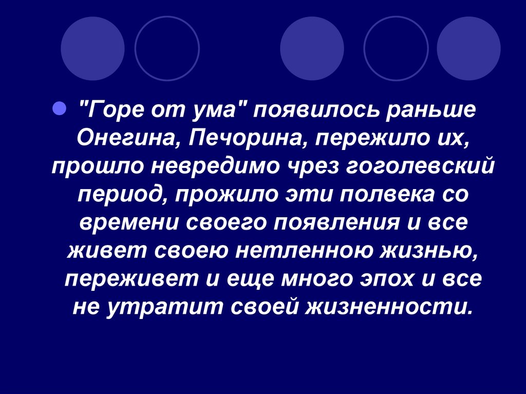 "Горе от ума" появилось раньшеОнегина, Печорина, пережило их,