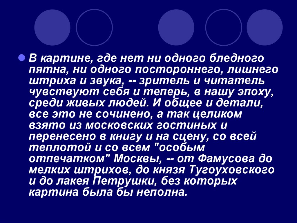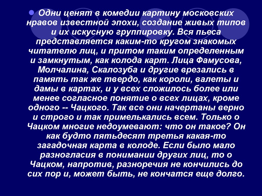 Одни ценят в комедии картину московскихнравов известной эпохи, создание живых типов