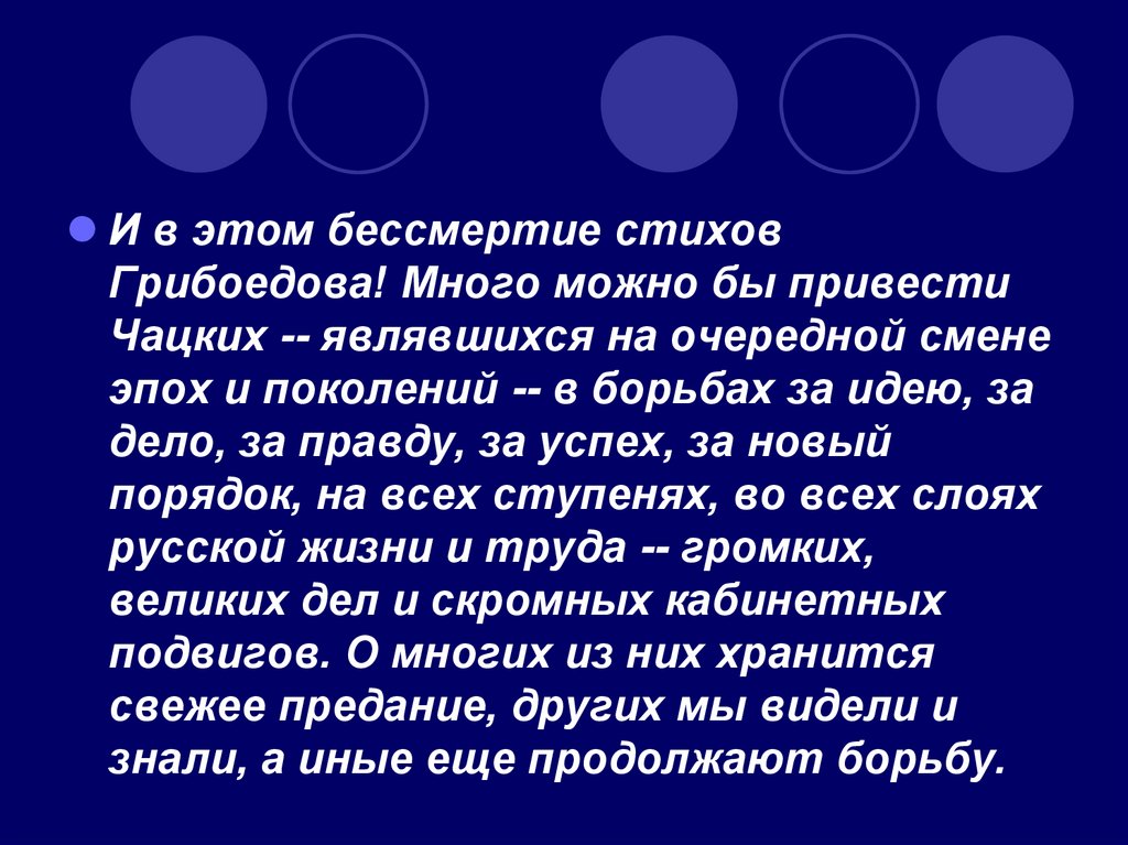 И в этом бессмертие стиховГрибоедова! Много можно бы привести