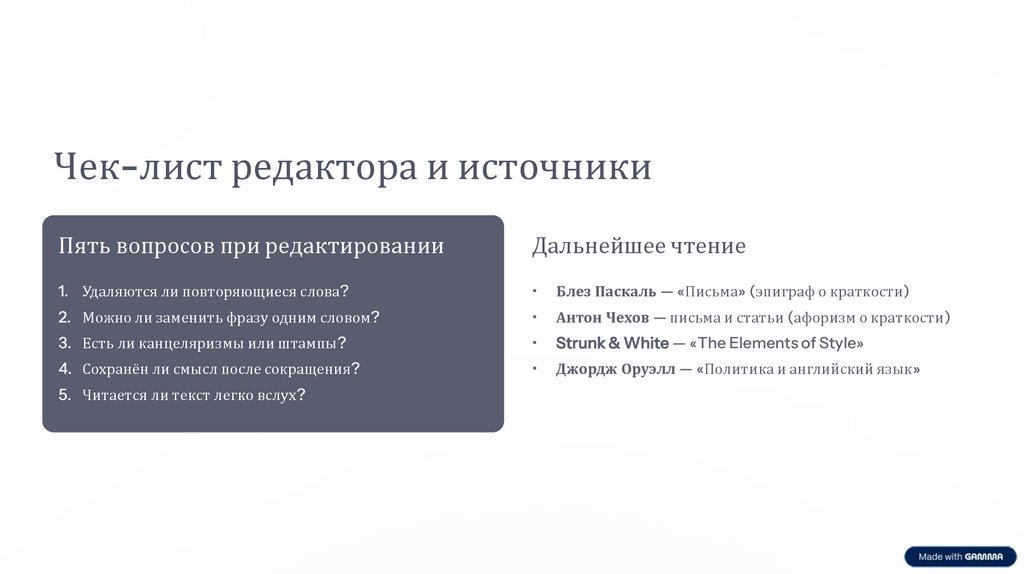 Чек-лист редактора и источникиПять вопросов при редактировании