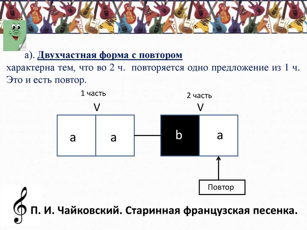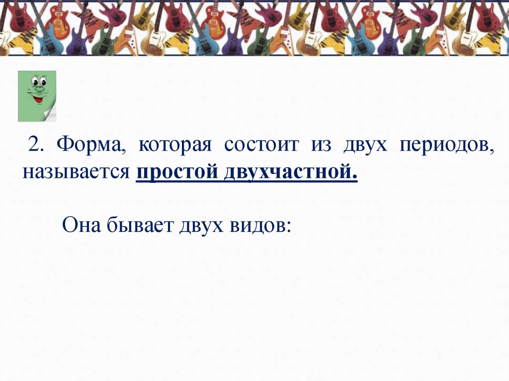 2. Форма, которая состоит из двух периодов,называется простой двухчастной.