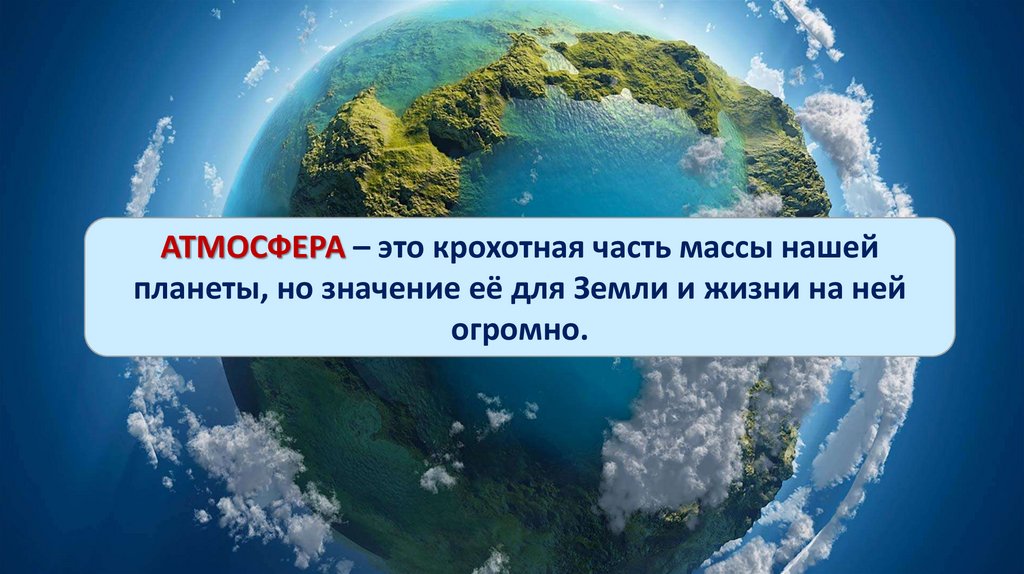 АТМОСФЕРА – это крохотная часть массы нашейпланеты, но значение её для Земли и жизни на ней