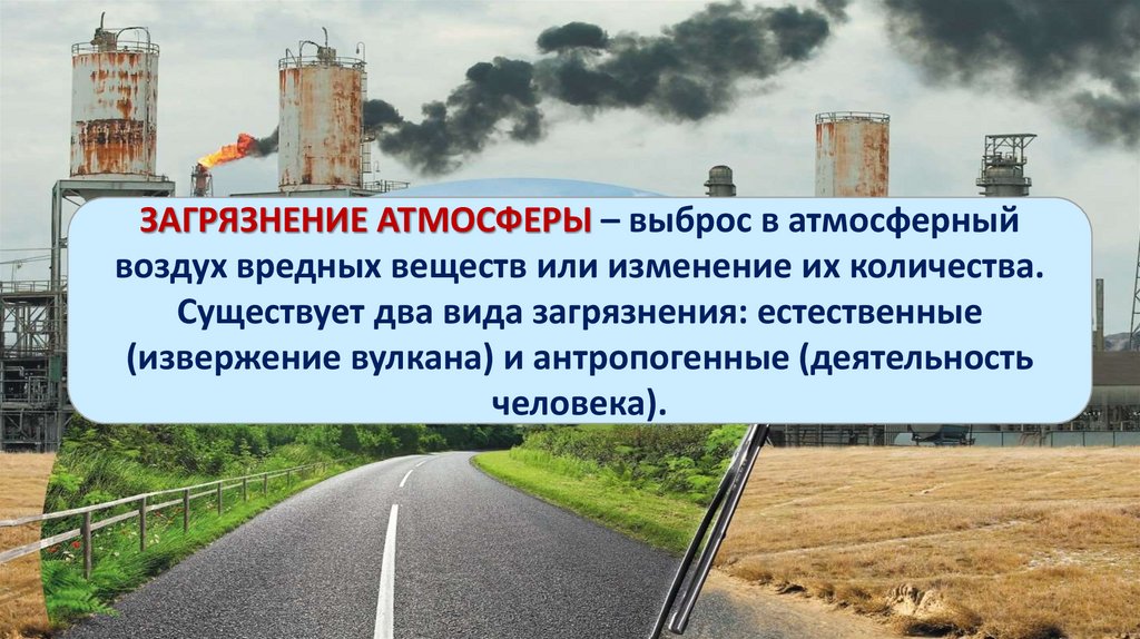 ЗАГРЯЗНЕНИЕ АТМОСФЕРЫ – выброс в атмосферныйвоздух вредных веществ или изменение их количества.