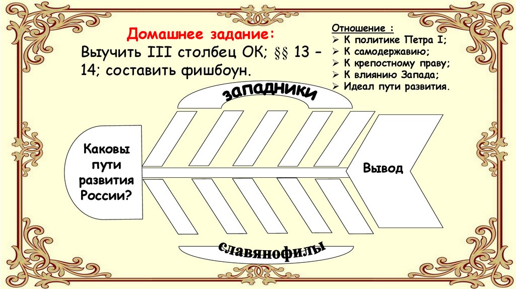 Домашнее задание:Выучить III столбец ОК; §§ 13 –