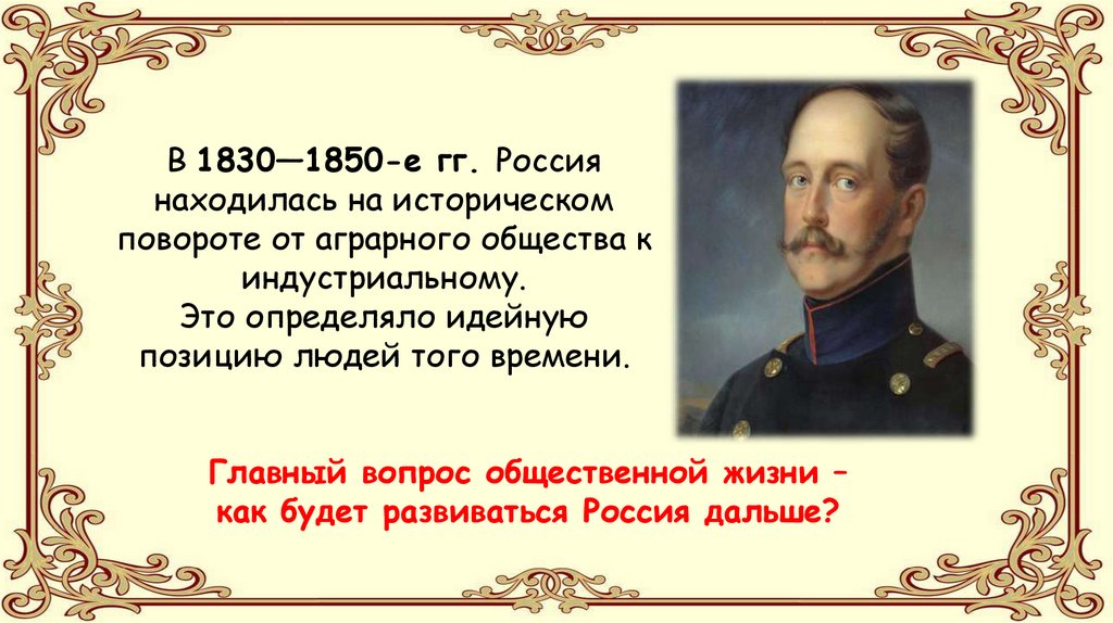В 1830—1850-е гг. Россиянаходилась на историческом