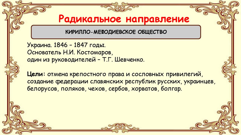 Радикальное направлениеКИРИЛЛО-МЕФОДИЕВСКОЕ ОБЩЕСТВО