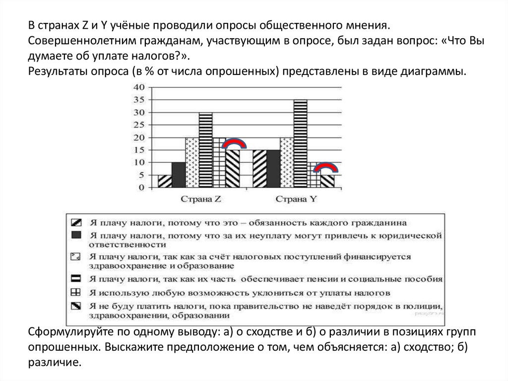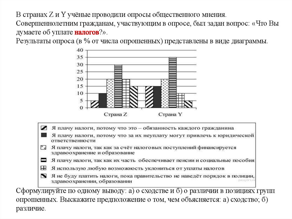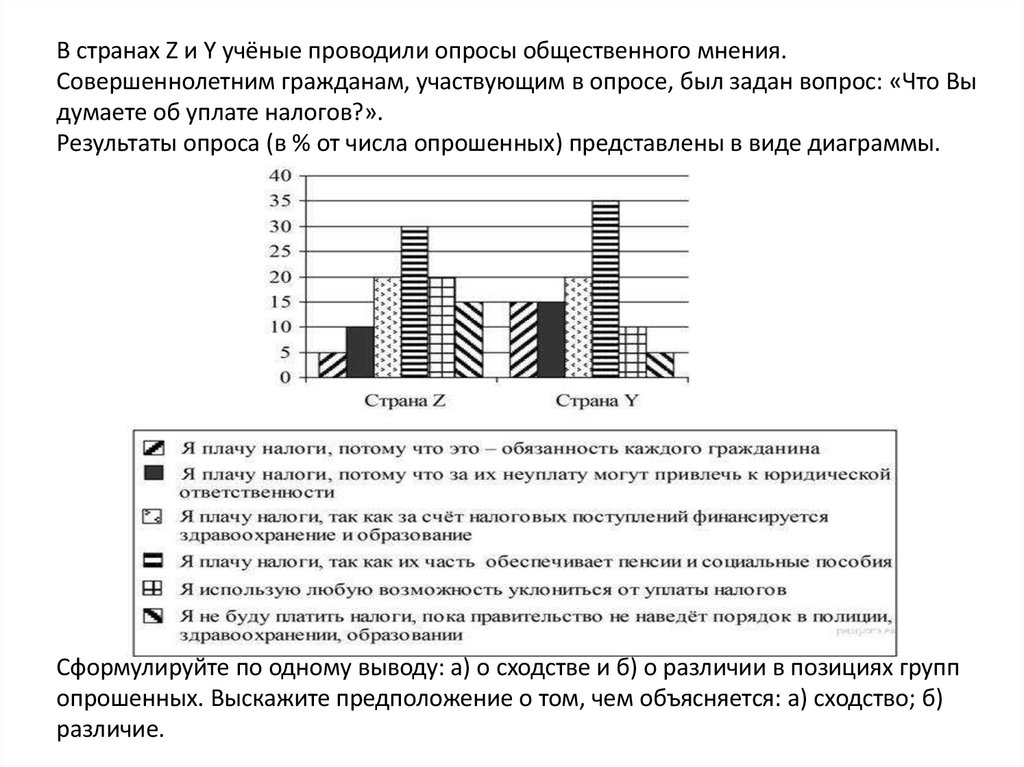 В странах Z и Y учёные проводили опросы общественного мнения.Совершеннолетним гражданам, участвующим в опросе, был задан вопрос: «Что Вы
