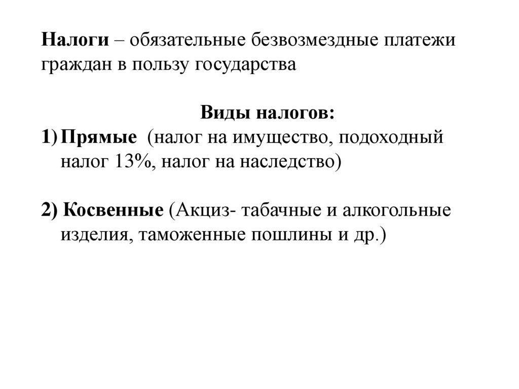 Налоги – обязательные безвозмездные платежиграждан в пользу государства