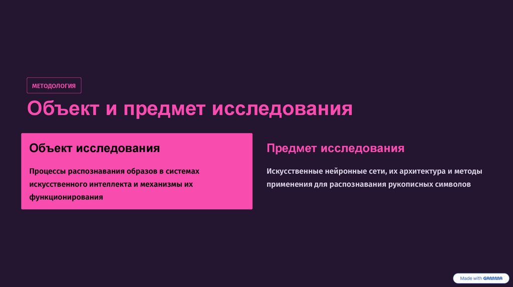 МЕТОДОЛОГИЯОбъект и предмет исследования