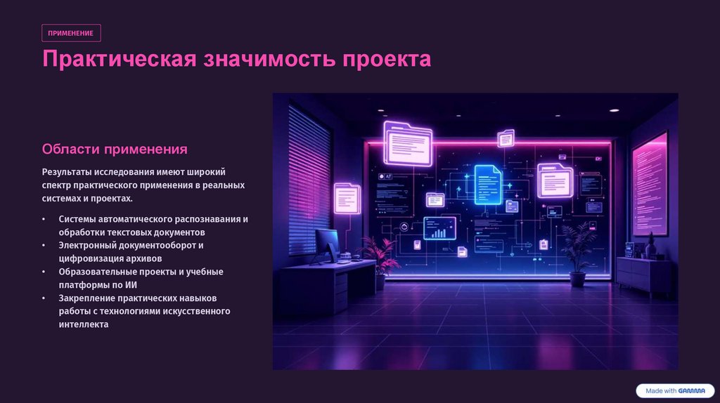 ПРИМЕНЕНИЕПрактическая значимость проекта