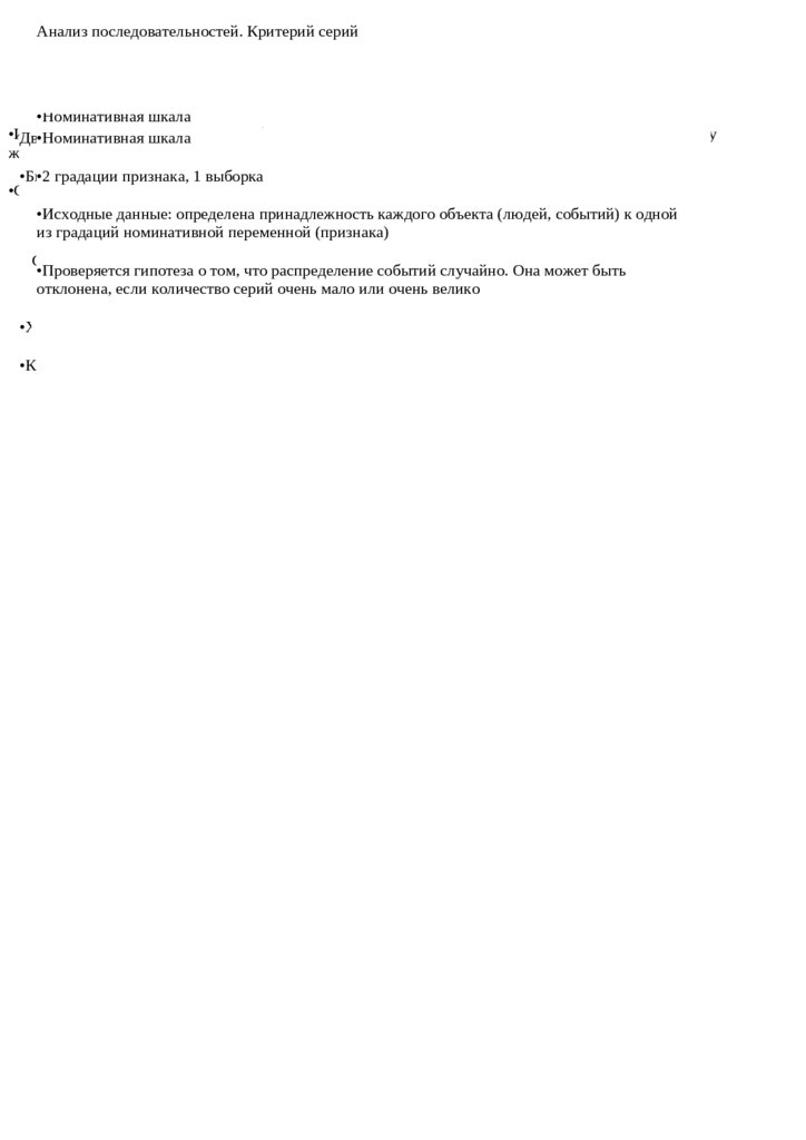 Анализ последовательностей. Критерий серий•Номинативная шкала