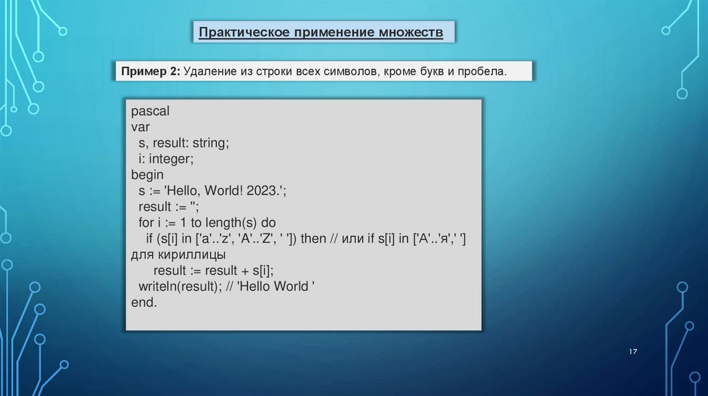 17. Как проверить принадлежность элемента множеству?