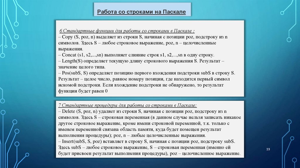 9. Стандартные процедуры и функции для работы со строками