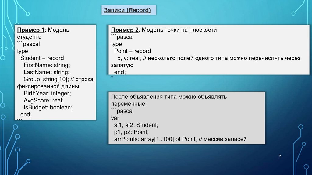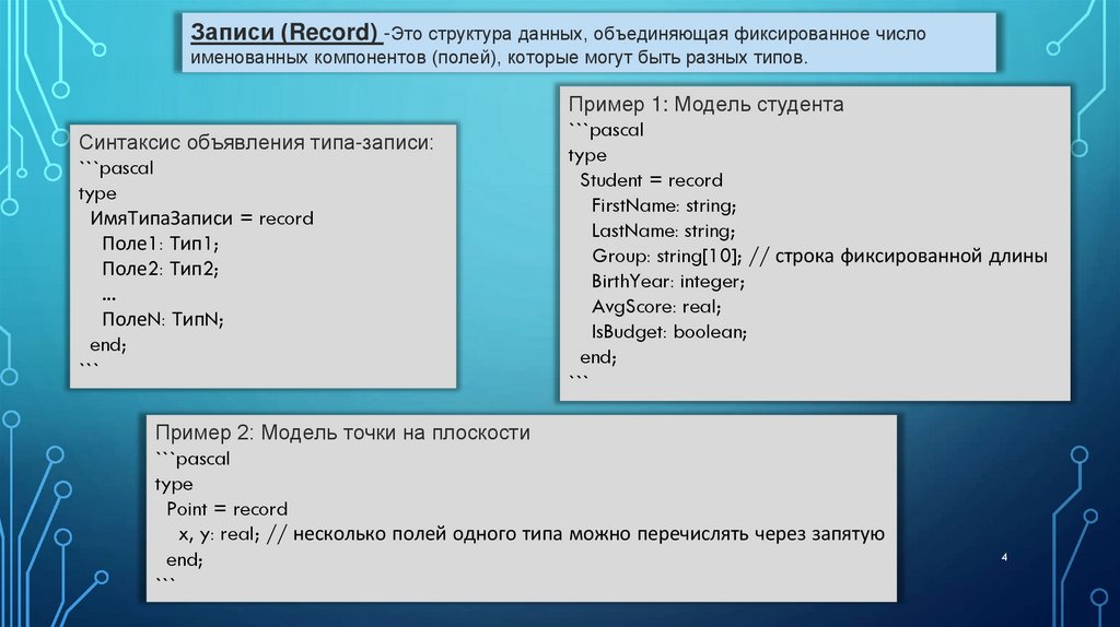 1. Записи (Record) – для описания комплексных объектов.