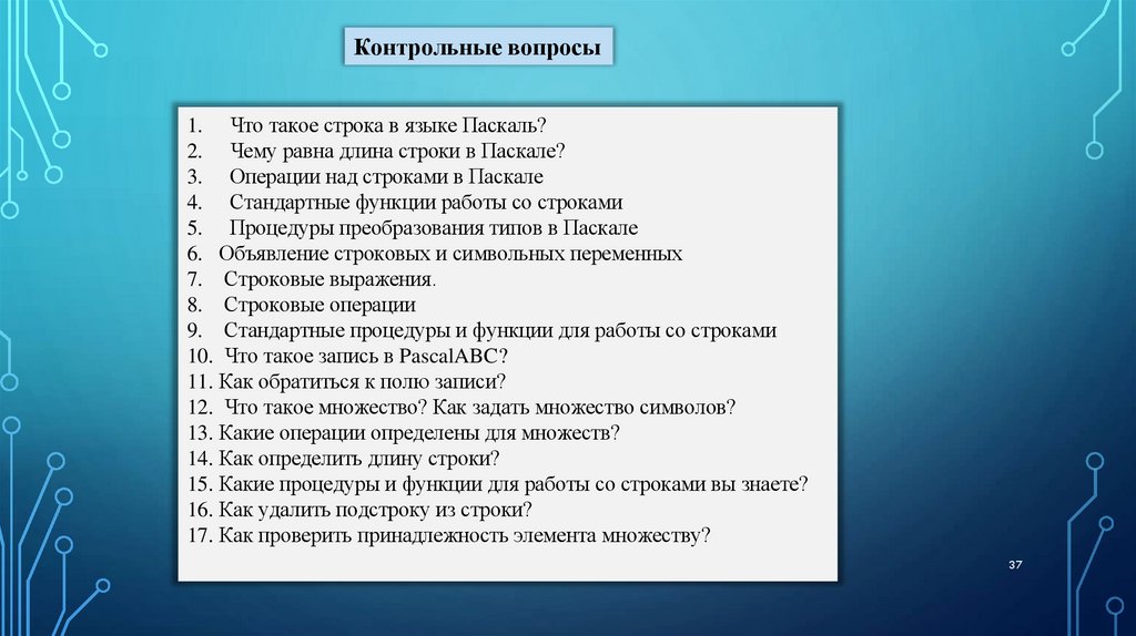 Контрольные вопросы1. Что такое строка в языке Паскаль?
