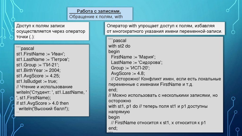 Работа с записями.Обращение к полям, with