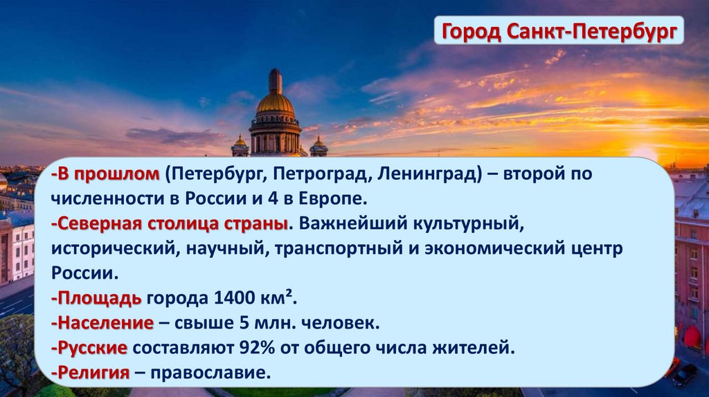 Город Санкт-Петербург-В прошлом (Петербург, Петроград, Ленинград) – второй по