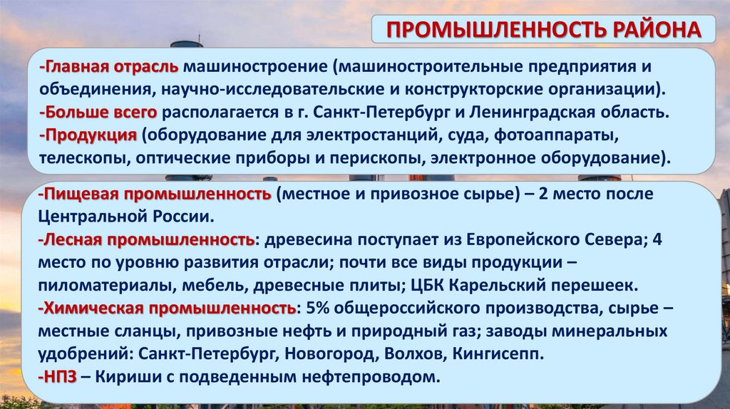 г. Санкт-Петербург и пригород.-70% промышленных предприятий Северо-Западного района России.