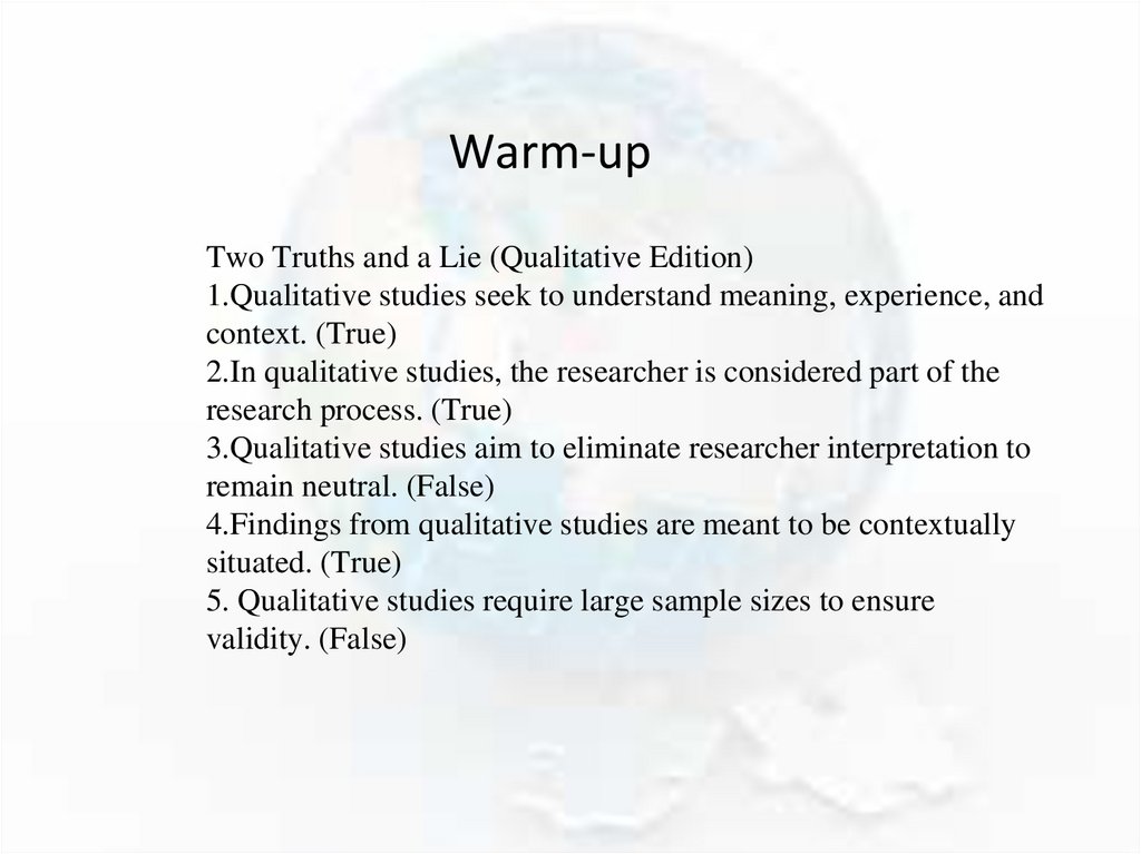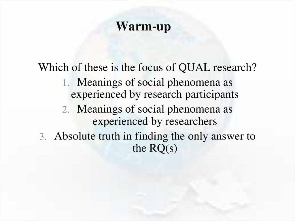 Warm-upWhich of these is the focus of QUAL research?