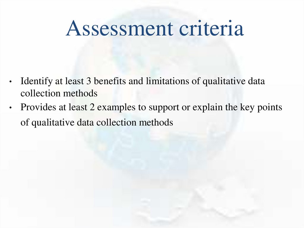 Assessment criteriaIdentify at least 3 benefits and limitations of qualitative data