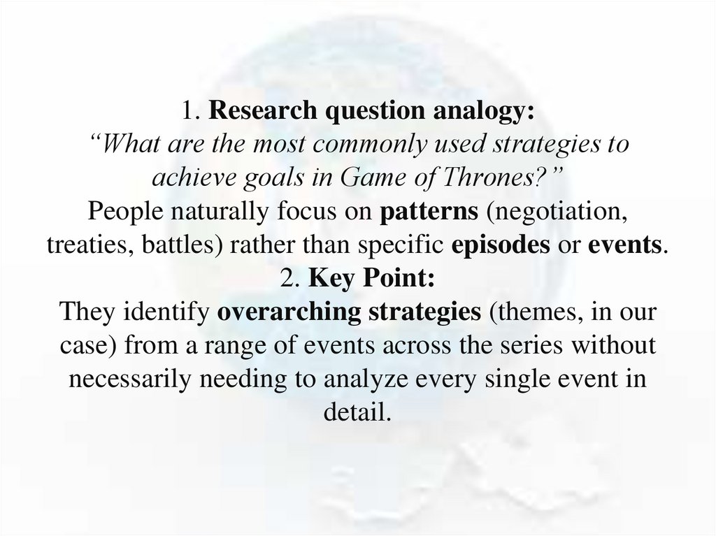 overarching patterns or key insights in the