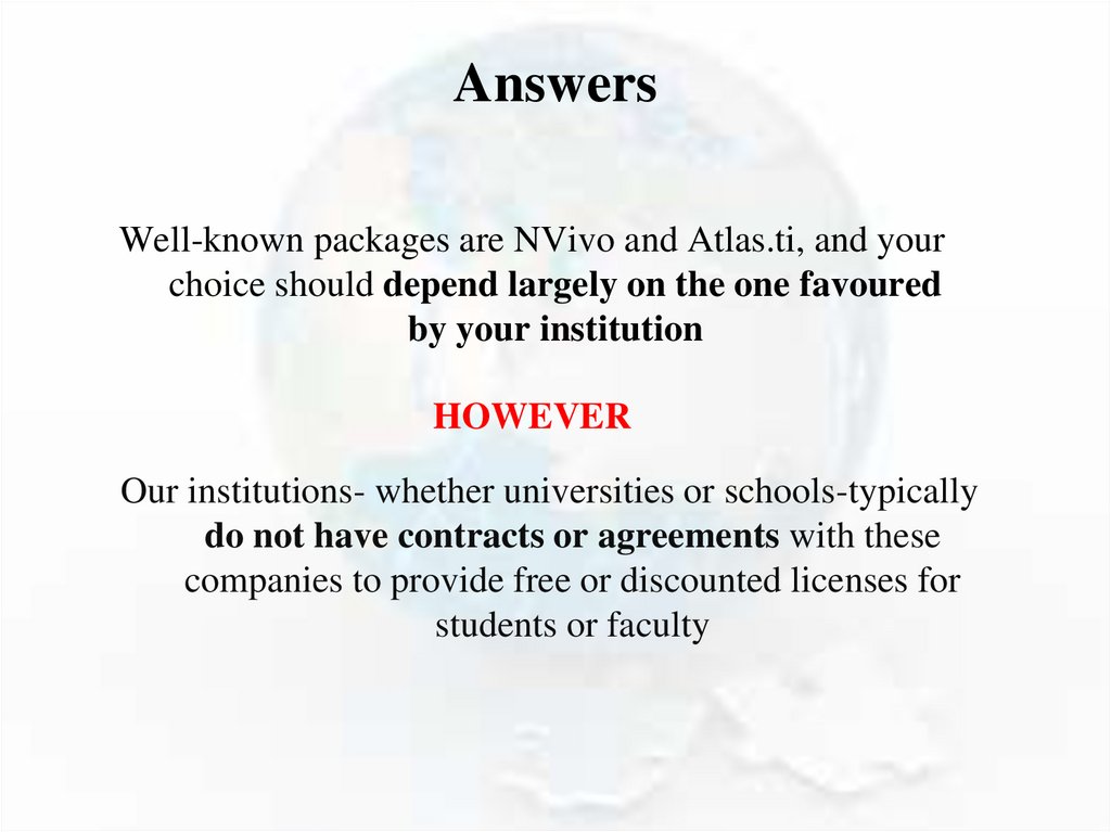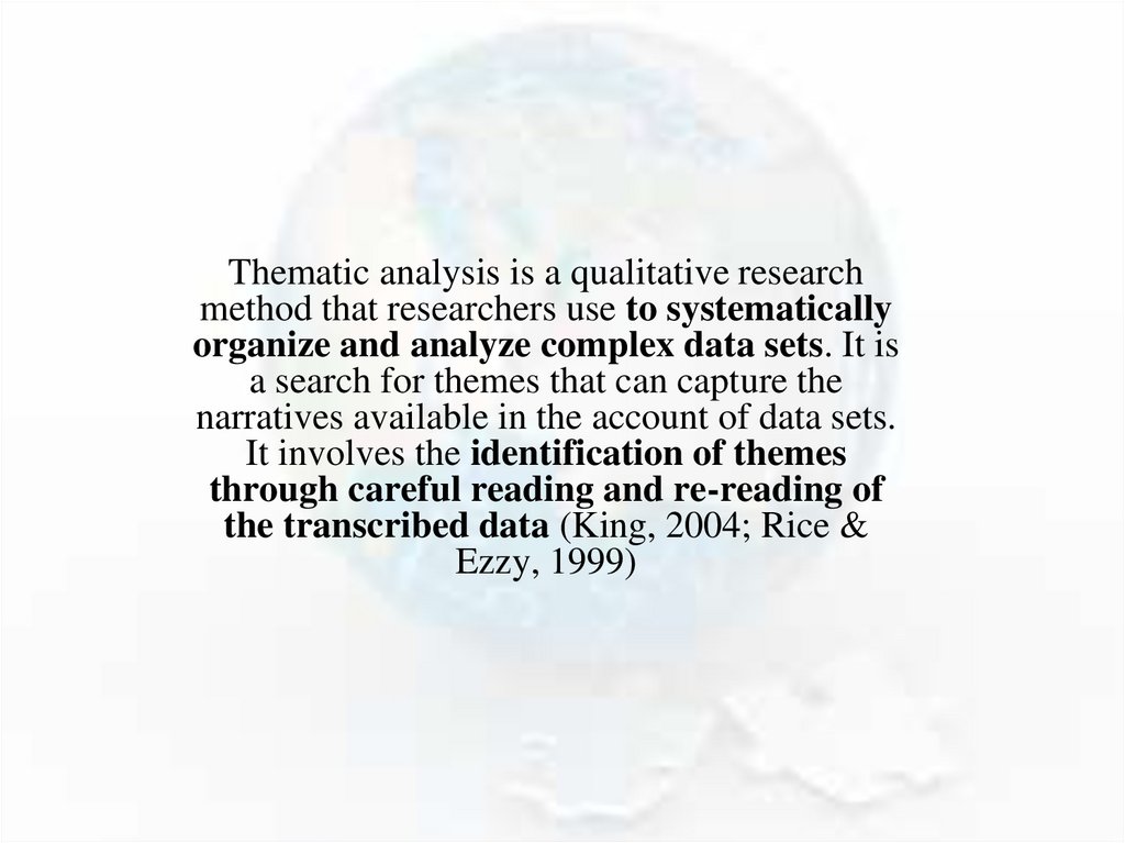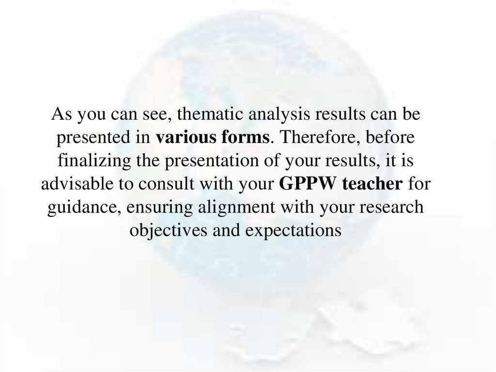 As you can see, thematic analysis results can bepresented in various forms. Therefore, before