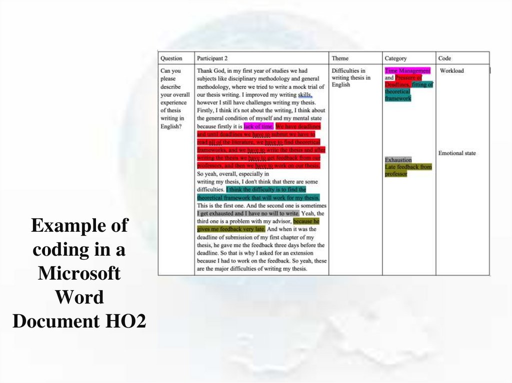 Thematic analysis practice- Group Work; HO31. What codes can you identify from this interview?