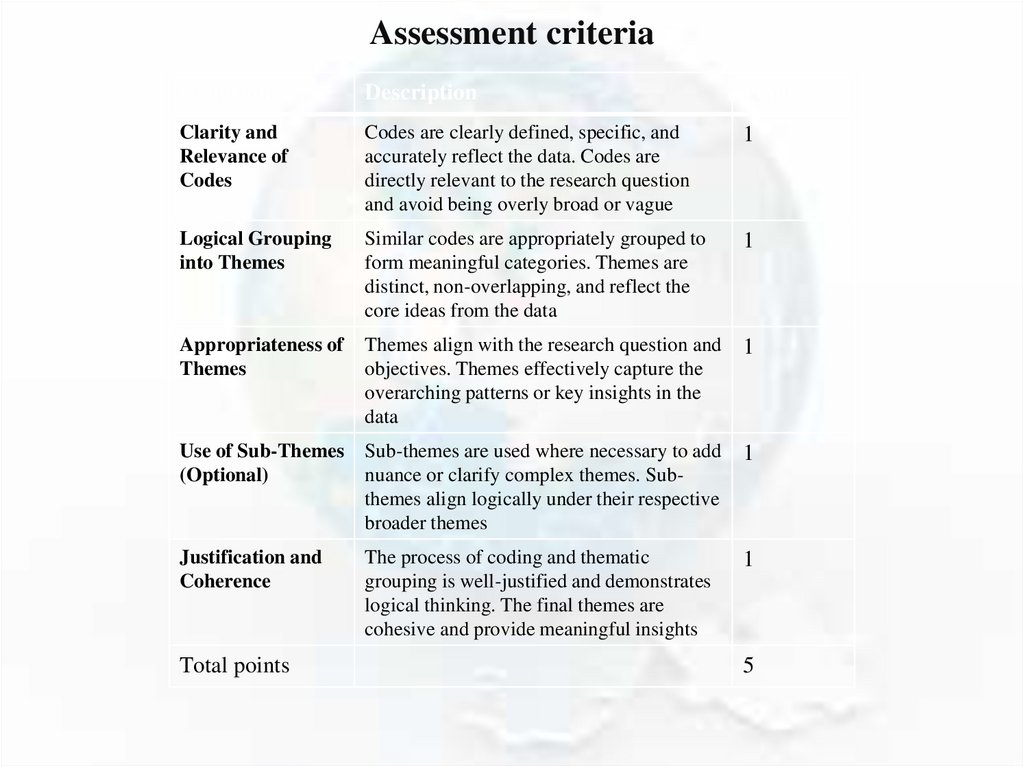 Assessment criteriaCriterion