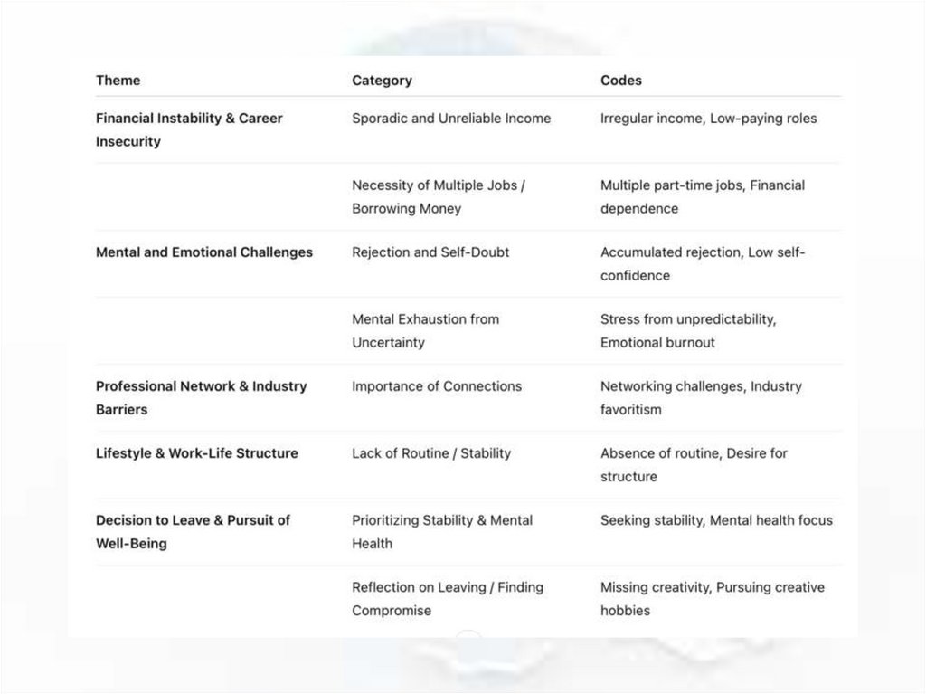 form meaningful categories. Themes are